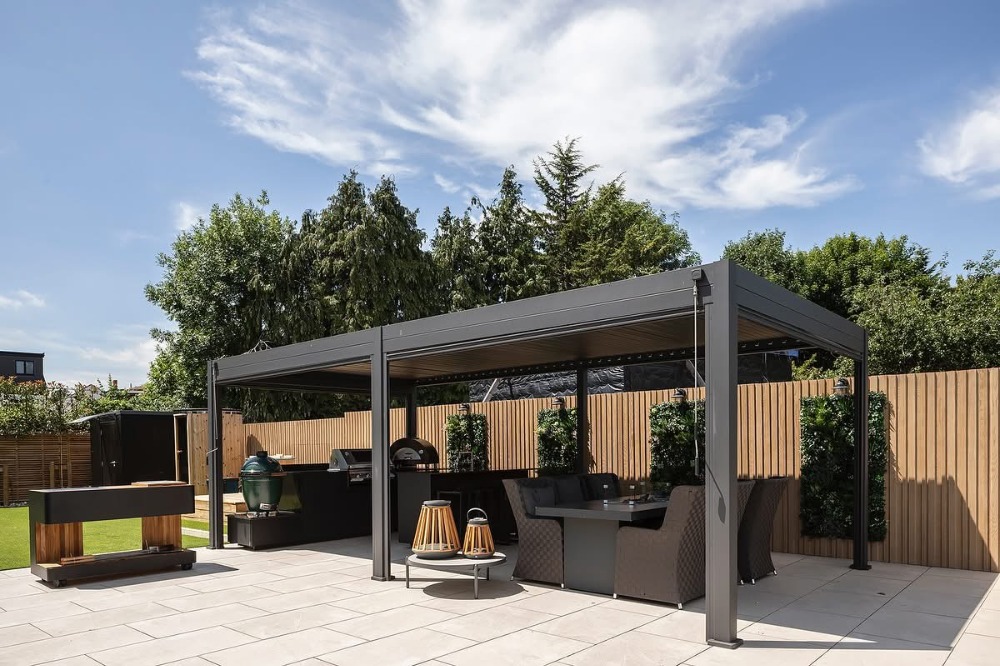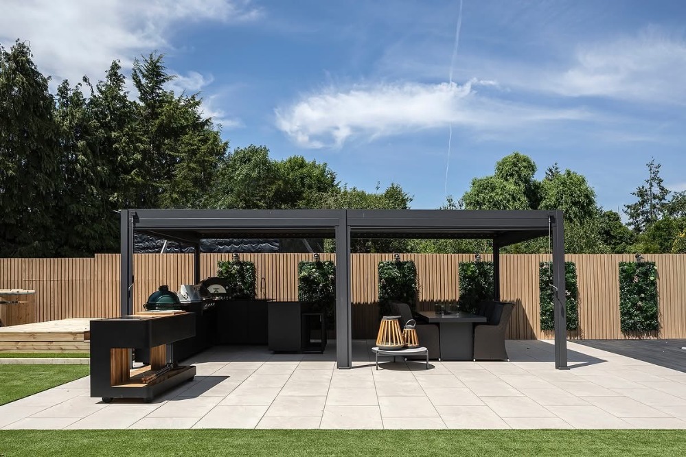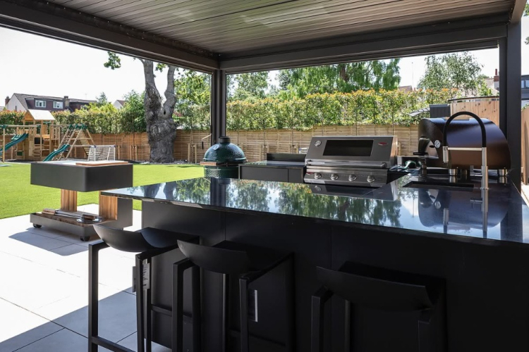 A covered kitchen area, providing a functional yet elegant entertaining zone