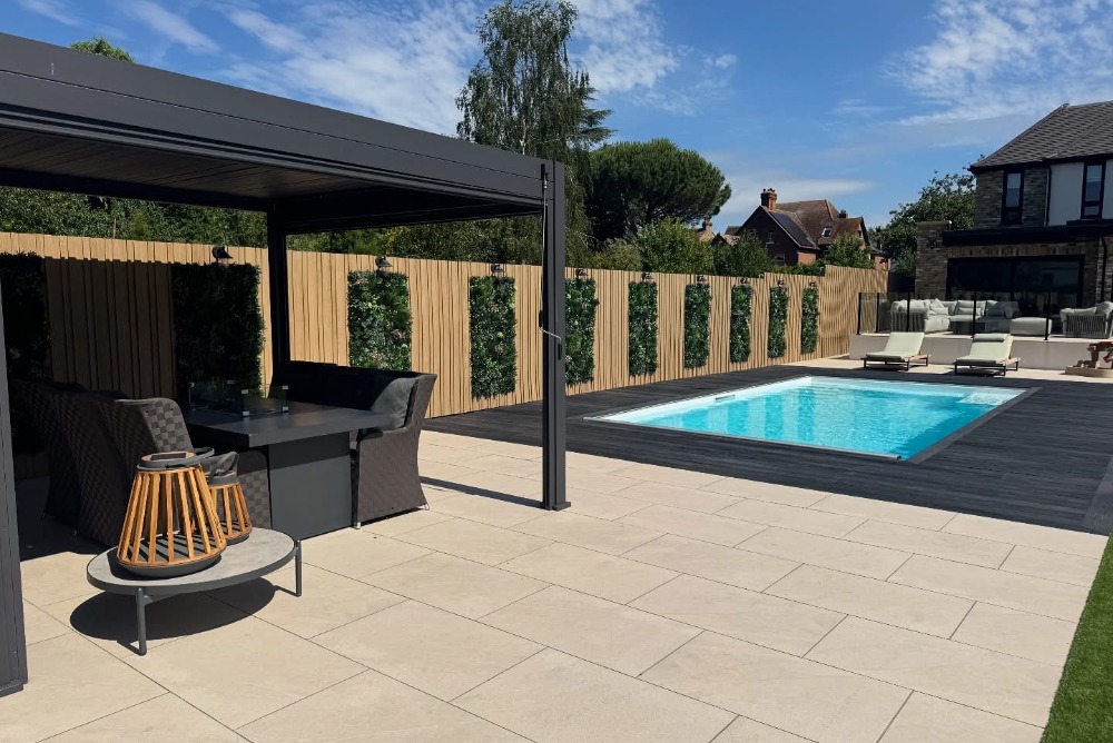 For homeowners seeking a sleek, modern finish that complements luxury outdoor spaces, Silver Kandla Grey Porcelain Paving offers the perfect combination of style and durability. This recent installation in York highlights how premium porcelain can unify a garden, pool area, and covered outdoor kitchen into a seamless, sophisticated retreat.