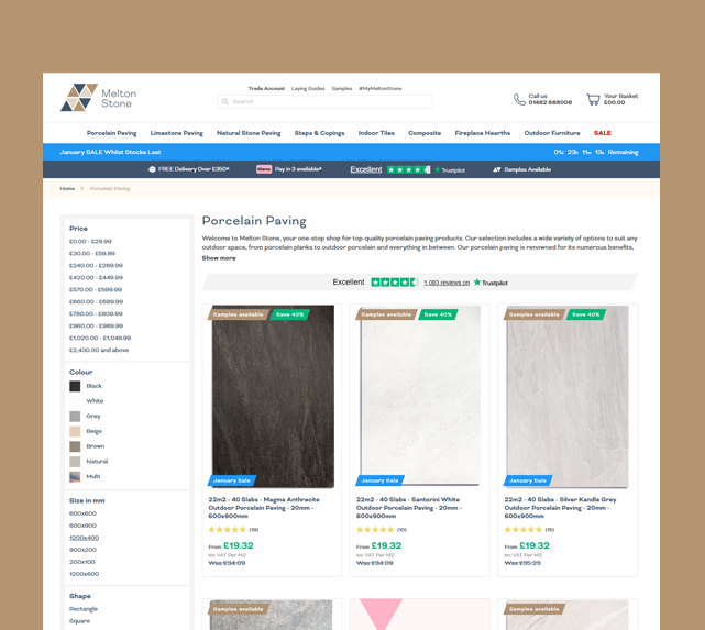 Explore our extensive collection of Outdoor Porcelain, Limestone, and Sandstone.
